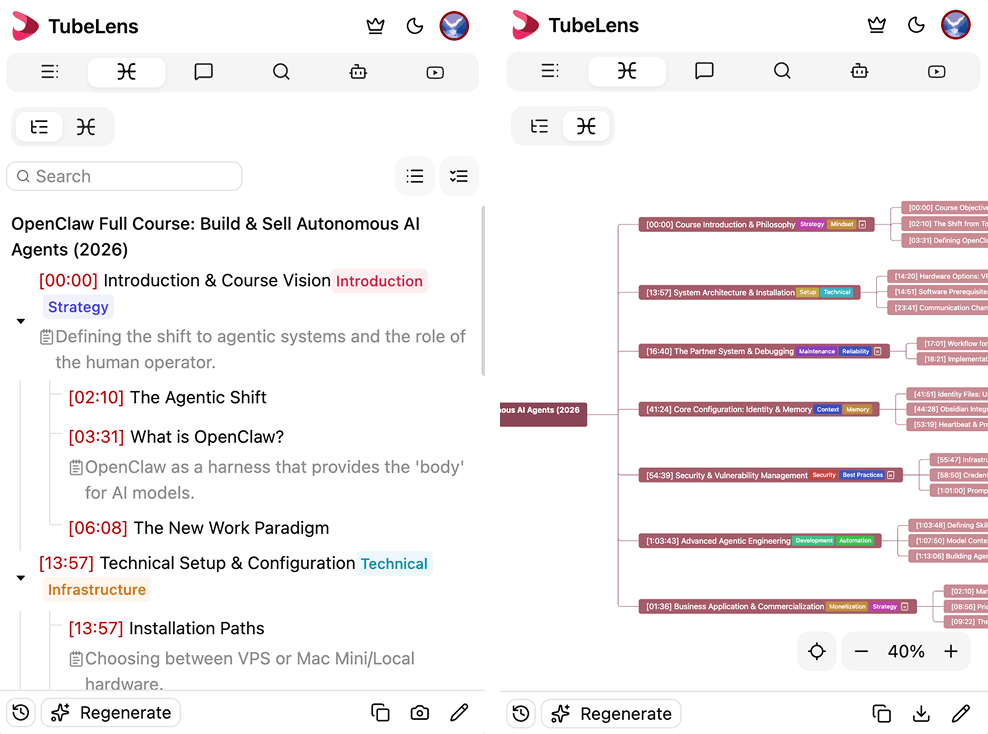 نقرة واحدة لتحويل الفيديوهات إلى خرائط ذهنية منظمة — المعرفة في لمحة