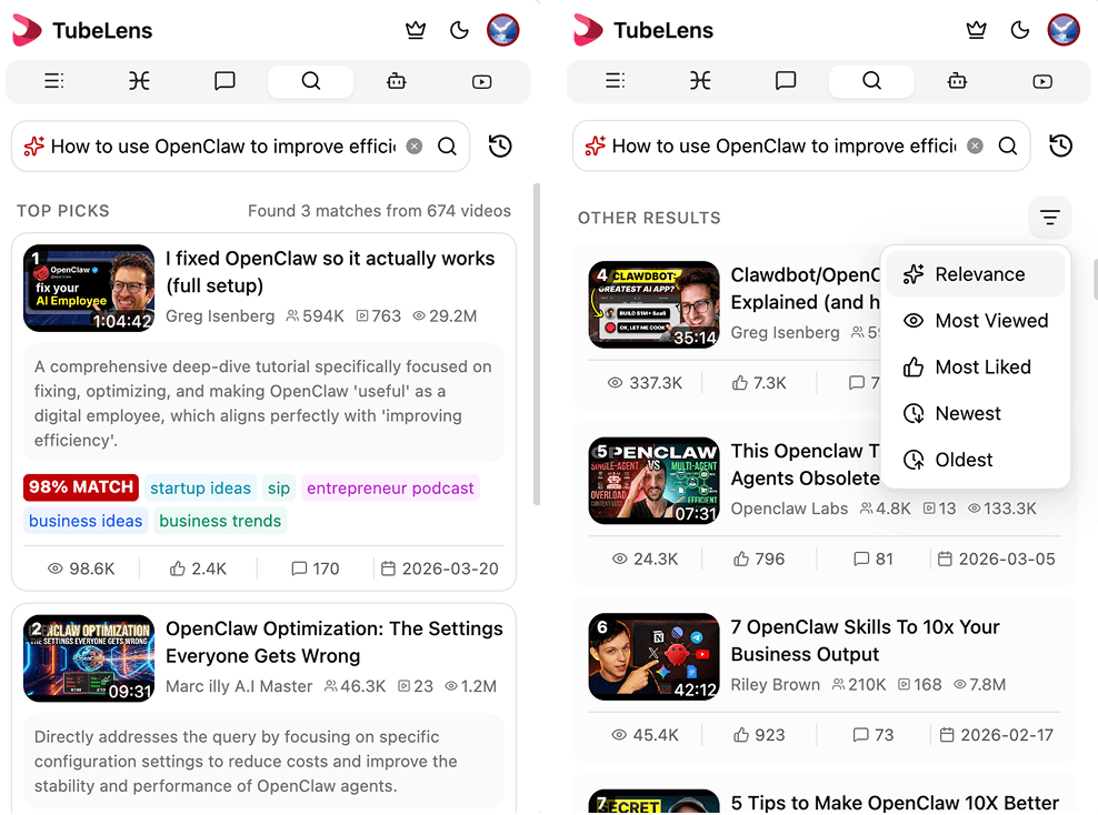 سواء كنت طالبًا أو صانع محتوى أو مسوقًا، يساعدك TubeLens على استخلاص أقصى قيمة من يوتيوب. بدون بطاقة ائتمان، ابدأ الآن.