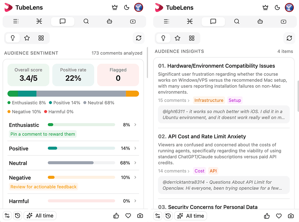 “يوتيوب مليء بالمحتوى القيّم، لكن الوقت محدود. يستخدم TubeLens الذكاء الاصطناعي لتلخيص درس مدته ساعة في ملخص من دقيقتين، وتحويل آلاف التعليقات إلى رؤى واضحة، والعثور بدقة على أفضل فيديو لك من بين الملايين.”